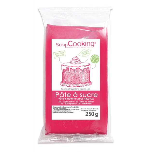 Découvrez la pâte à sucre Scrapcooking®! Cette pâte à sucre rose Fushia Scrapcooking de qualité professionnelle est idéale pour le cake design, que ce soit pour décorer vos gâteaux, cupacakes et autres gourmandises.