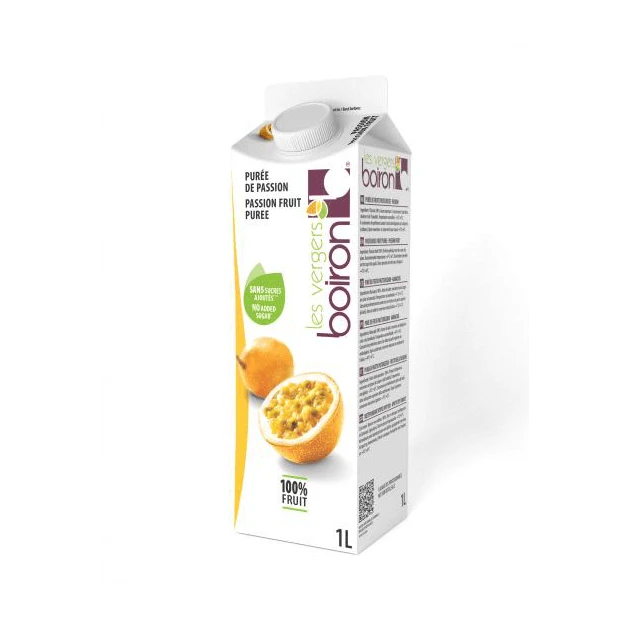 100% naturelle, la purée de fruit de la passion est aussi agréable en vue qu’en bouche : sa texture liquide saura agrémenter tous types de desserts, et peut-être même des plats salés si vous vous sentez aventurier. Sans le moindre sucre ajouté et sans OGM, cette purée de passion est un concentré de fruits et de bon goût pour votre cuisine.